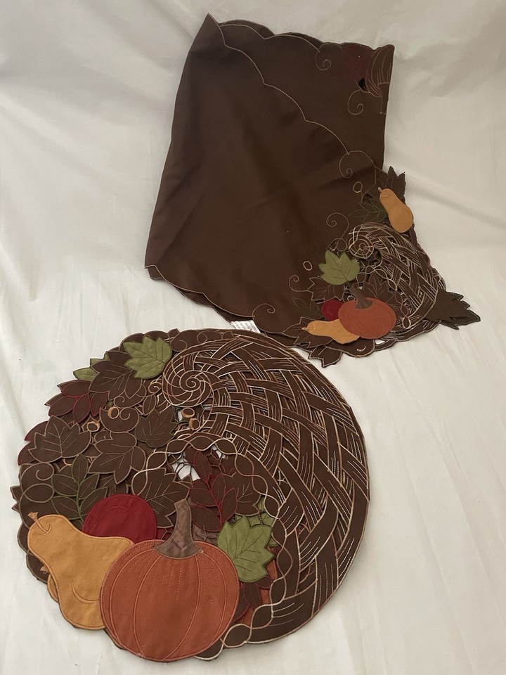 Vintage Embroiedered Harvest/Cutwork Fall 3 Placemets and 1 Table Runner - e401