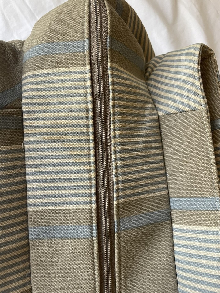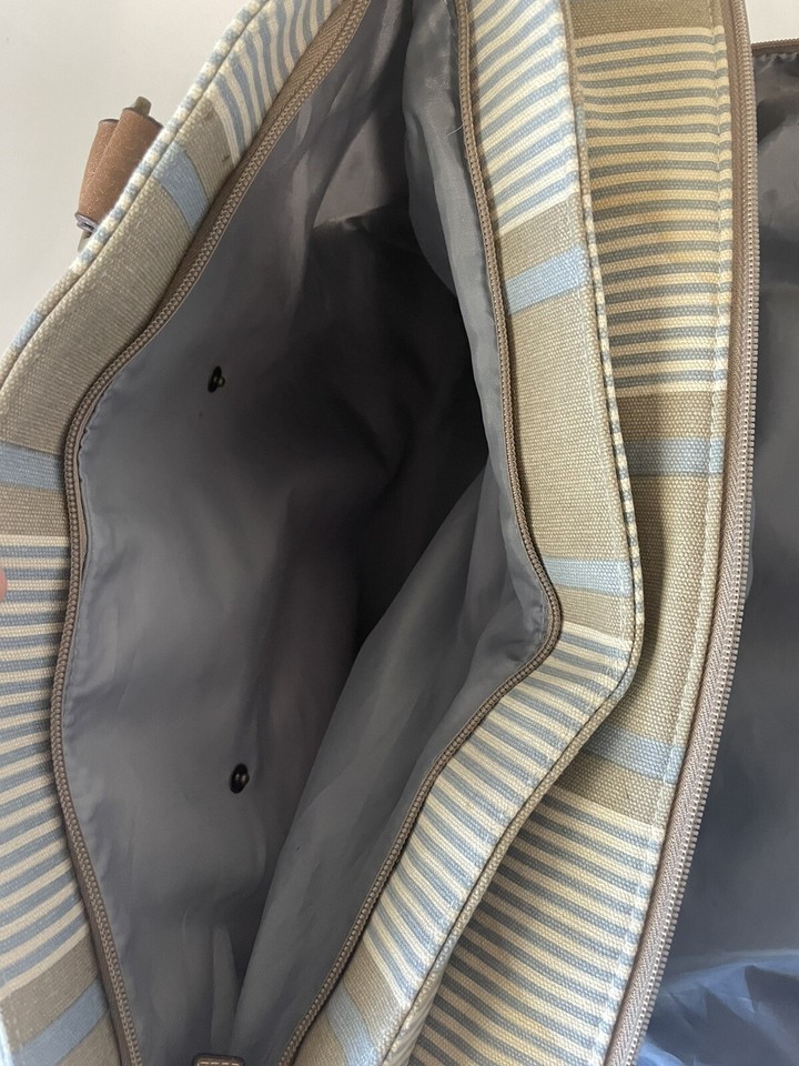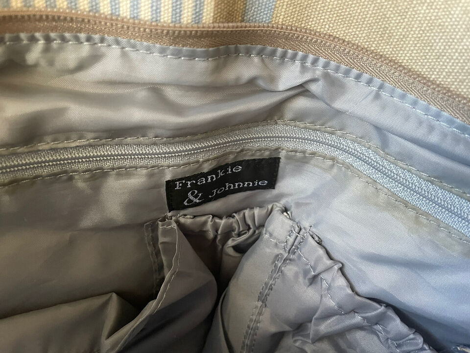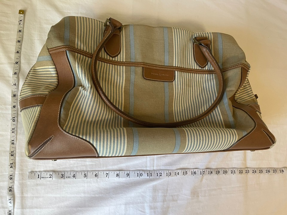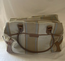 Vintage Frankie and Johnnie Luggage Duffle Travel Bag Blue & Brown Stripes -G1
