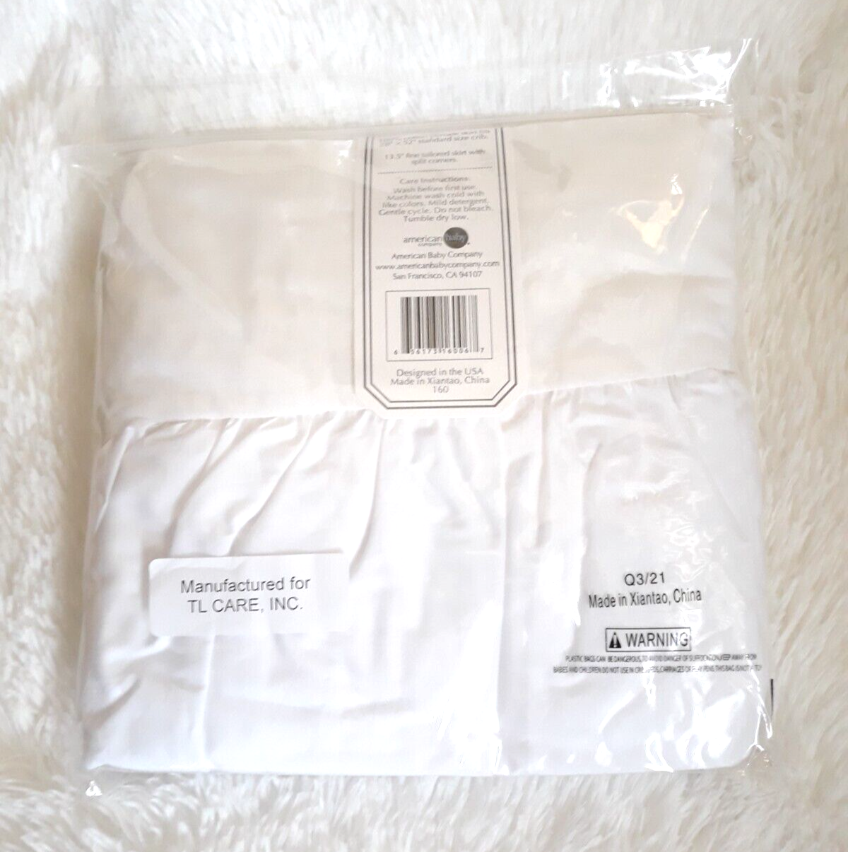 American Baby Company 100% Natural Cotton Percale Standard Crib Skirt ~ (WHITE) ~ NEW!!!