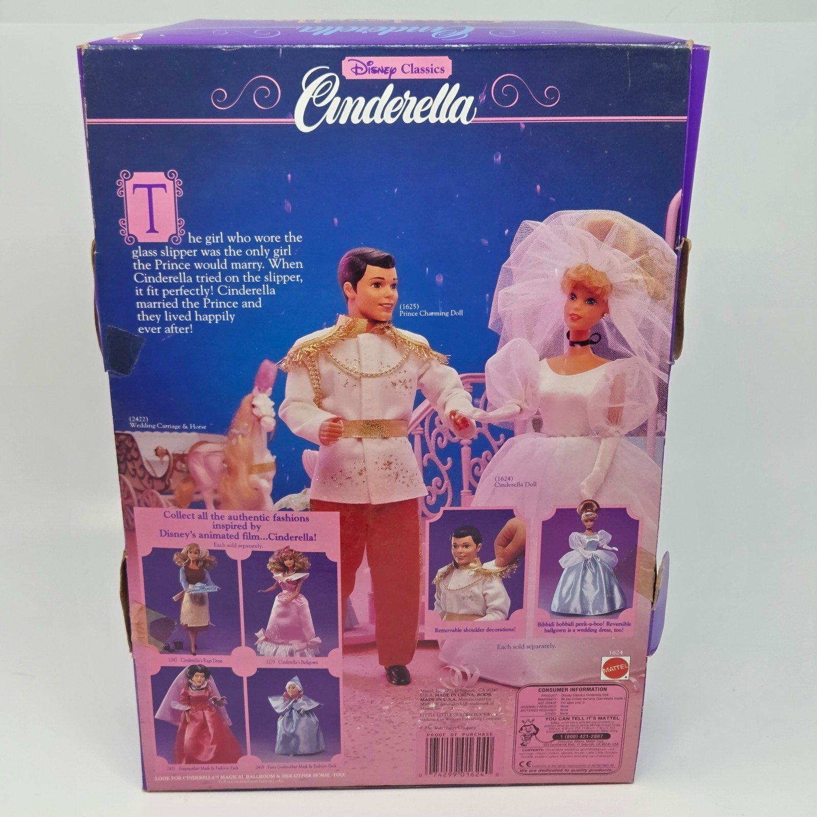 VINTAGE 1991 MATTEL DISNEY CINDERELLA PRINCESS IN OPEN BOX # 1624 COMPLETE