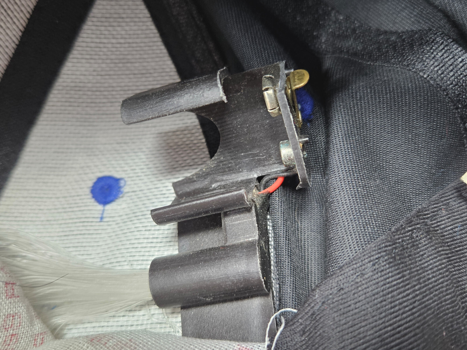 Has has a 9V battery holder inside that lights up the dots around the Seahawks logo with fiber optics.