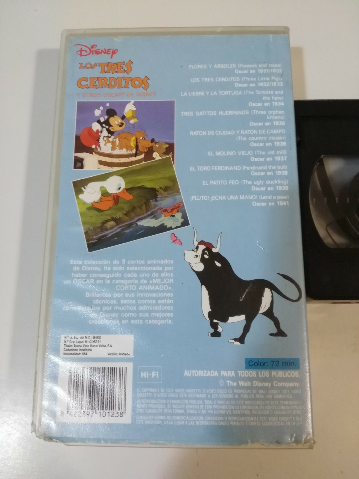 I Tre Porcellini E Altri Oscar Di WALT DISNEY 72 Min Cinta VHS Tape Castellano