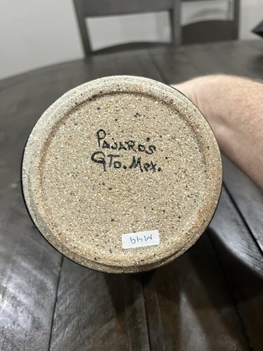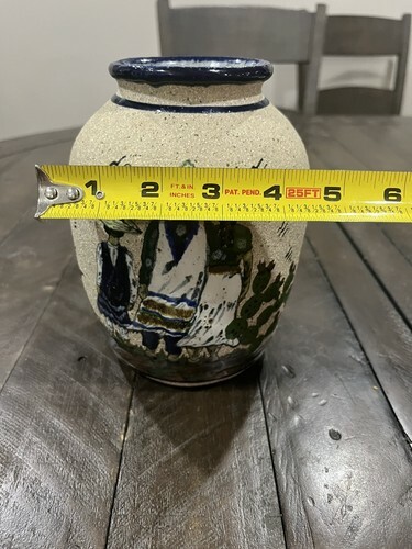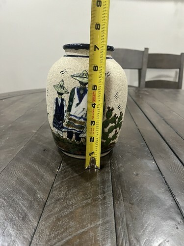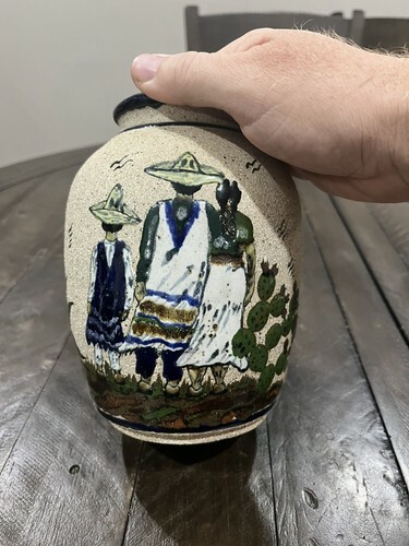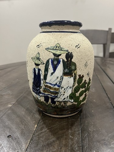Mexico Tonala Pottery Vase Mexican Folk Art Mother Father Son Desert 9” Pajaros
