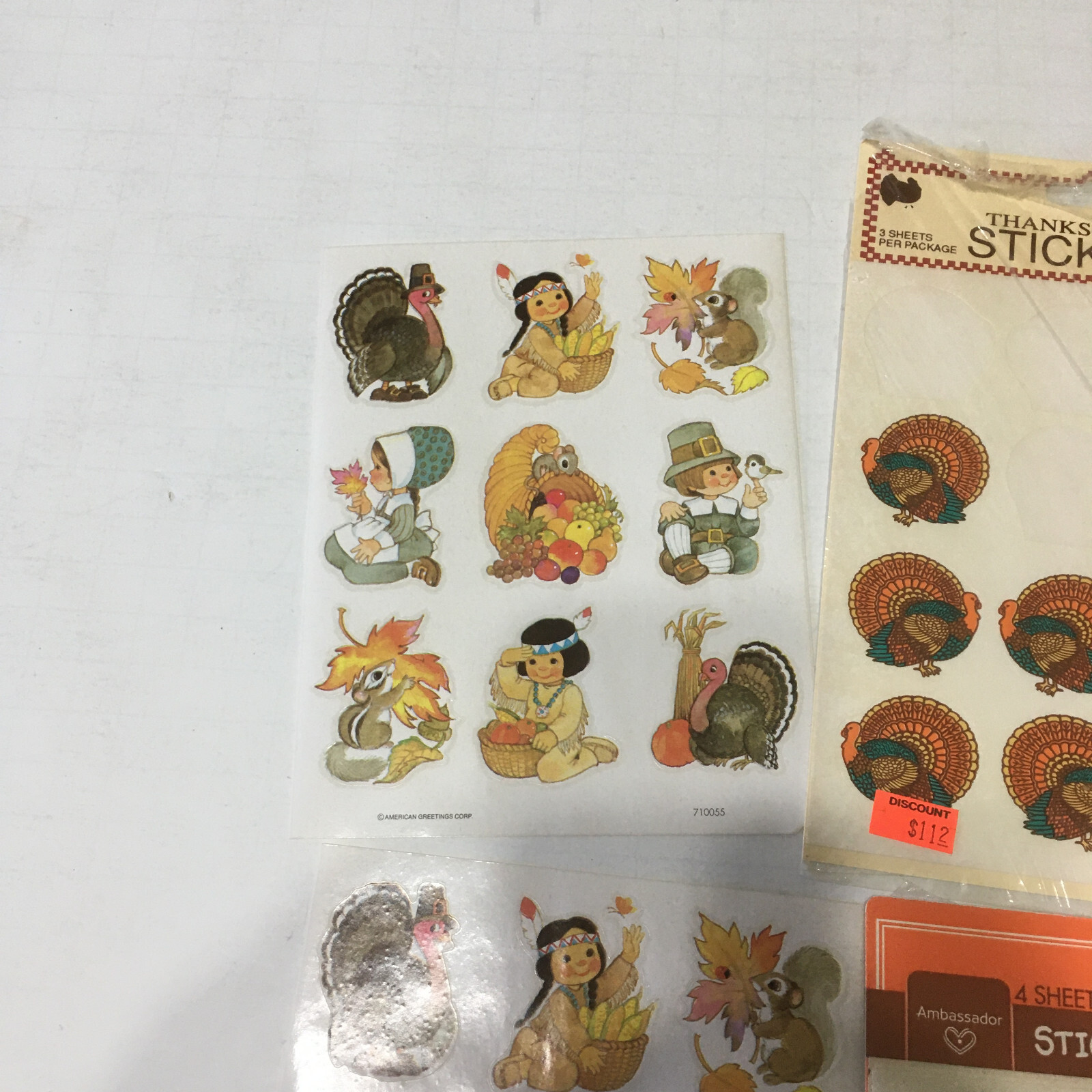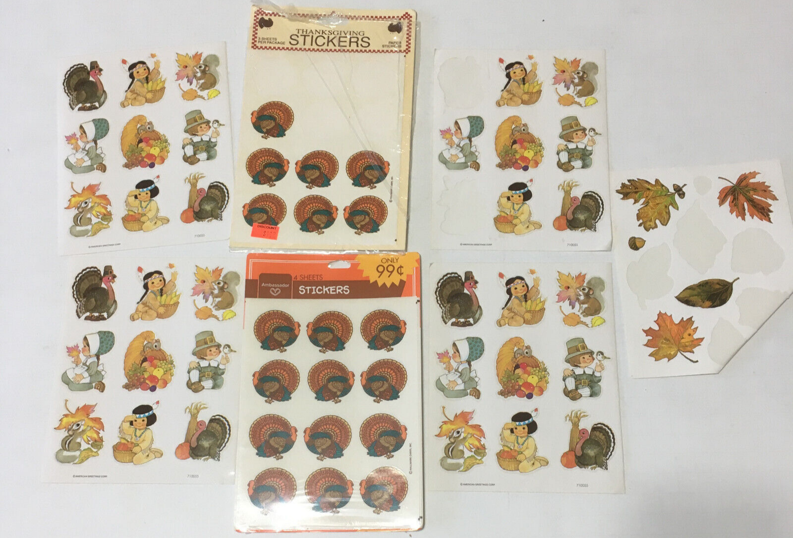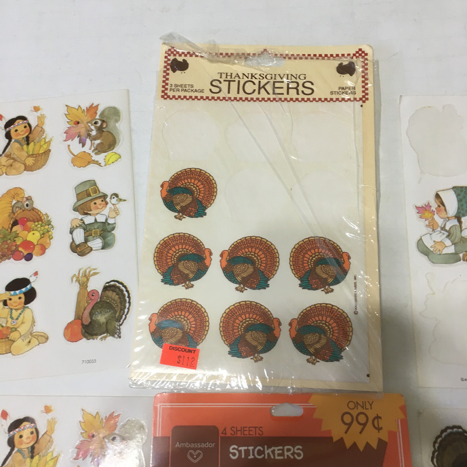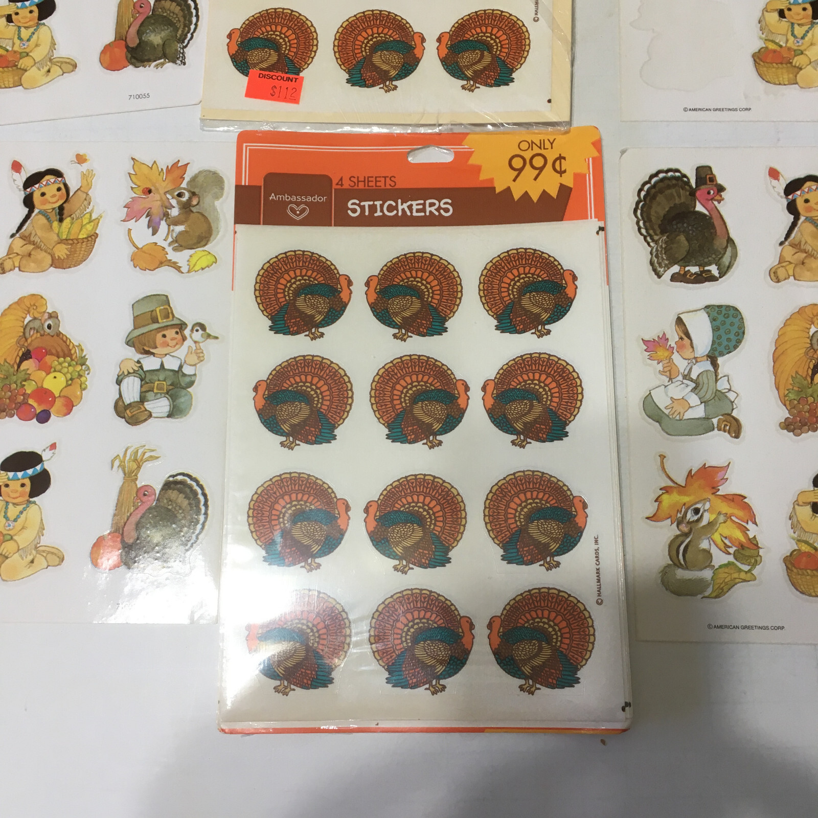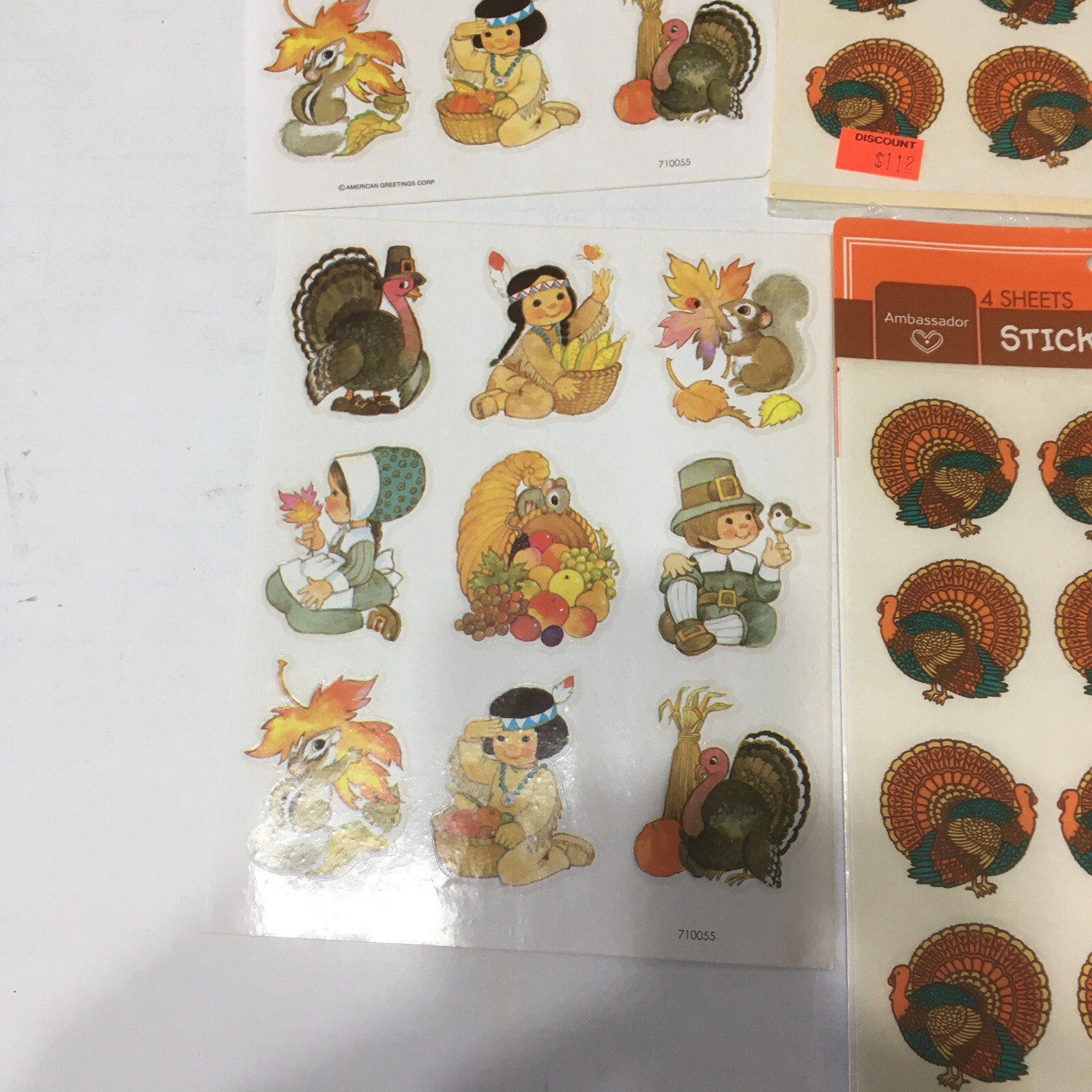 Vintage Thanksgiving fall sticker lot turkey pilgrim tree leafs stickers