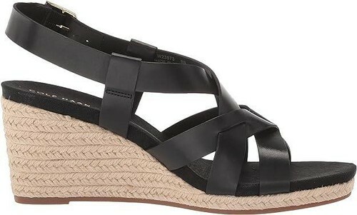 Cole Haan Women's Crystal Wedge Sandal 70MM Black Glazed Leather W25373