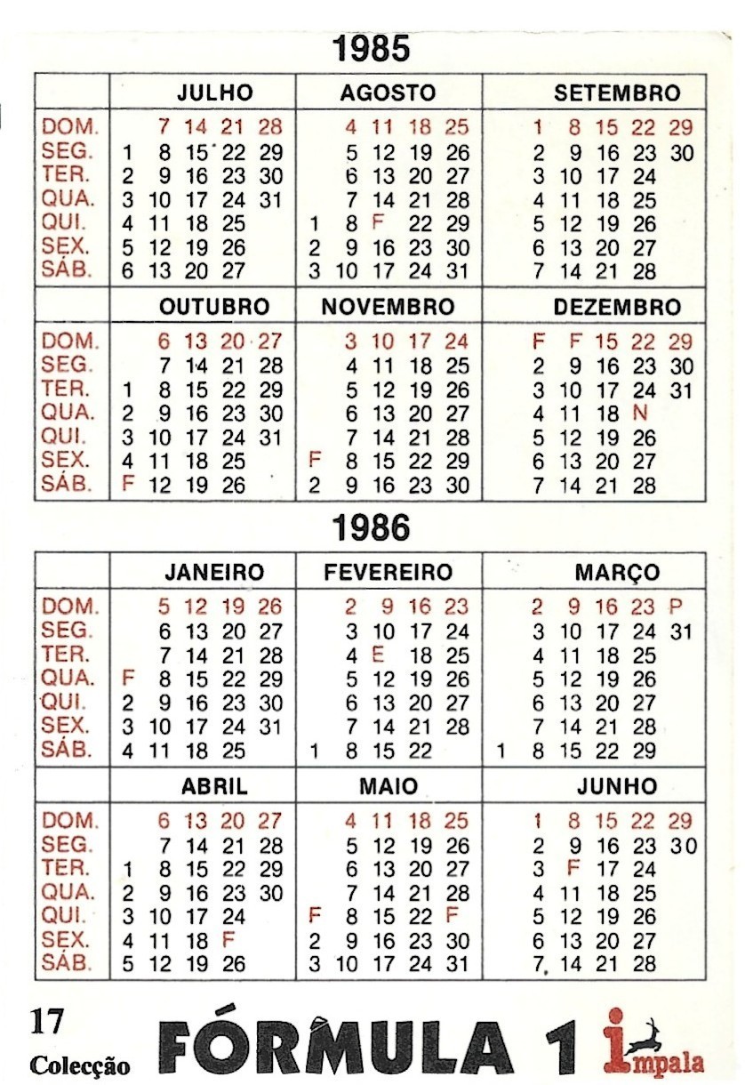 ⭕VTG Formula 1 NIKI LAUDA pocket calendar 1985 F1 pilot