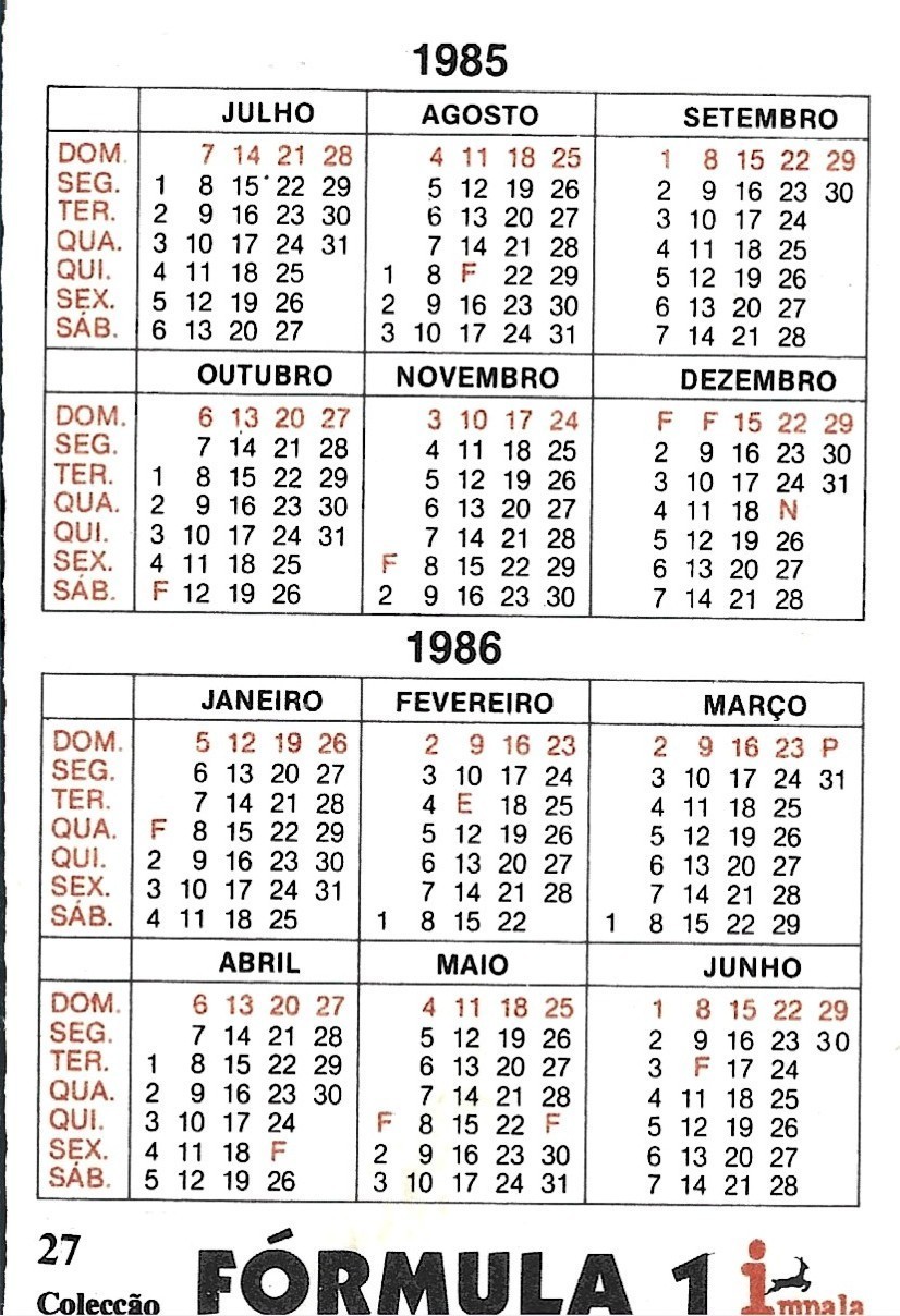 ⭕VTG Formula 1 ELIO DE ANGELIS pocket calendar 1985 F1 pilot