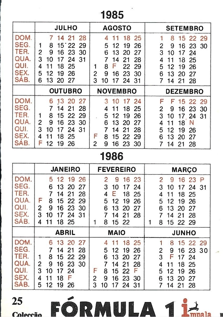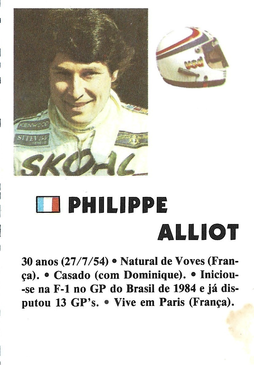⭕VTG Formula 1 PHILIPPE ALLIOT pocket calendar 1985 F1 pilot