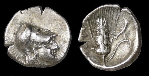 Reverse: META left; Barley ear with leaf to right; cornucopia above leaf.