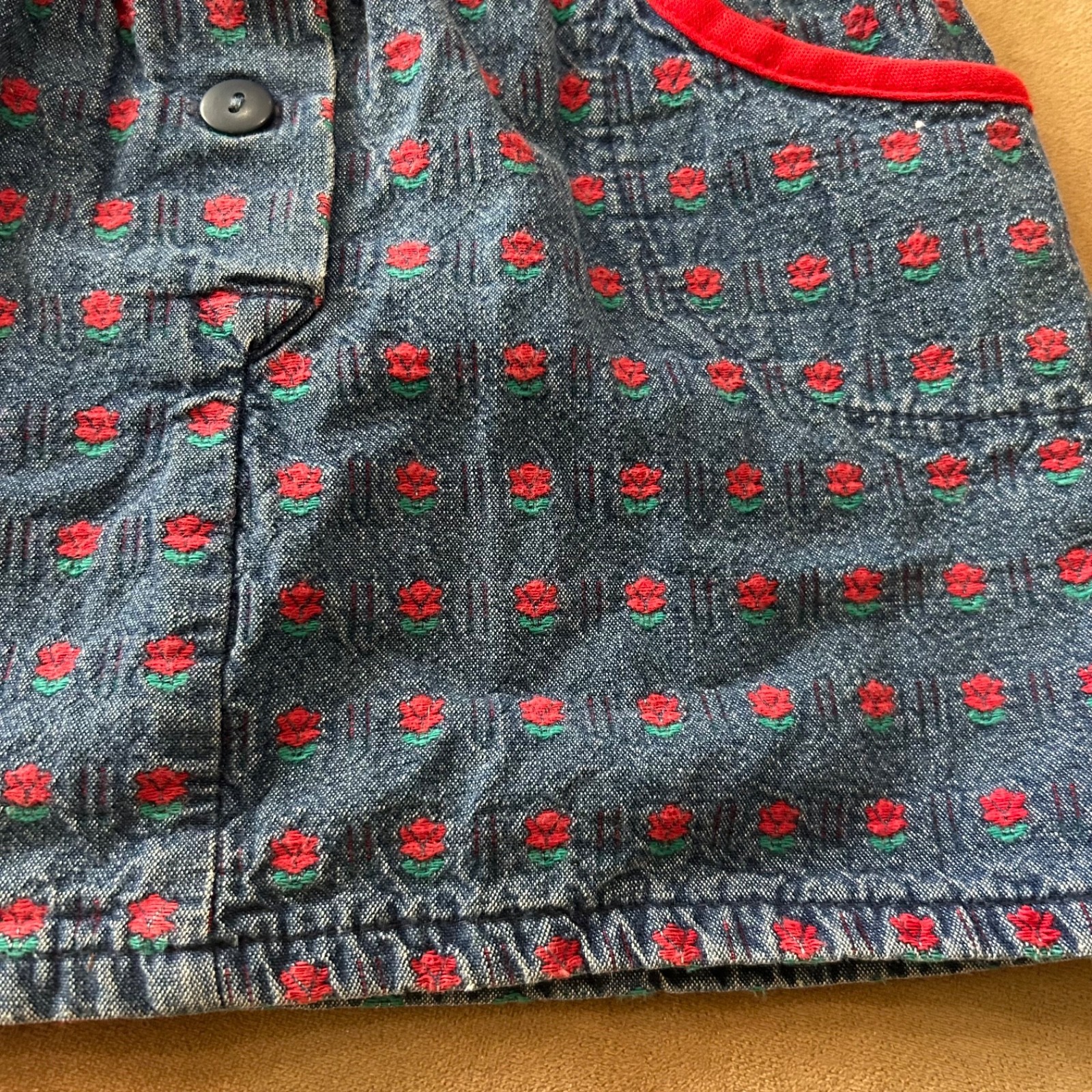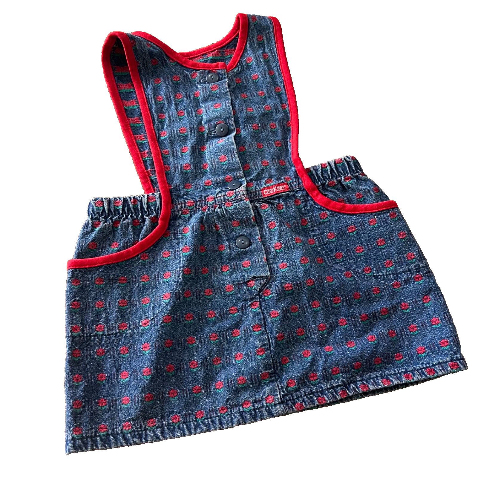Vintage OshKosh B'Gosh Toddler Girl Dress Jumper Red Flowers tulips rose Size 3T