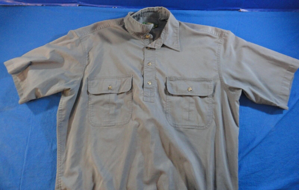CABELA'S LIGHT GRAY QAURTER BUTTON UP SHORT SLEEVE OUTDOOR GEAR HIKING SHIRT L