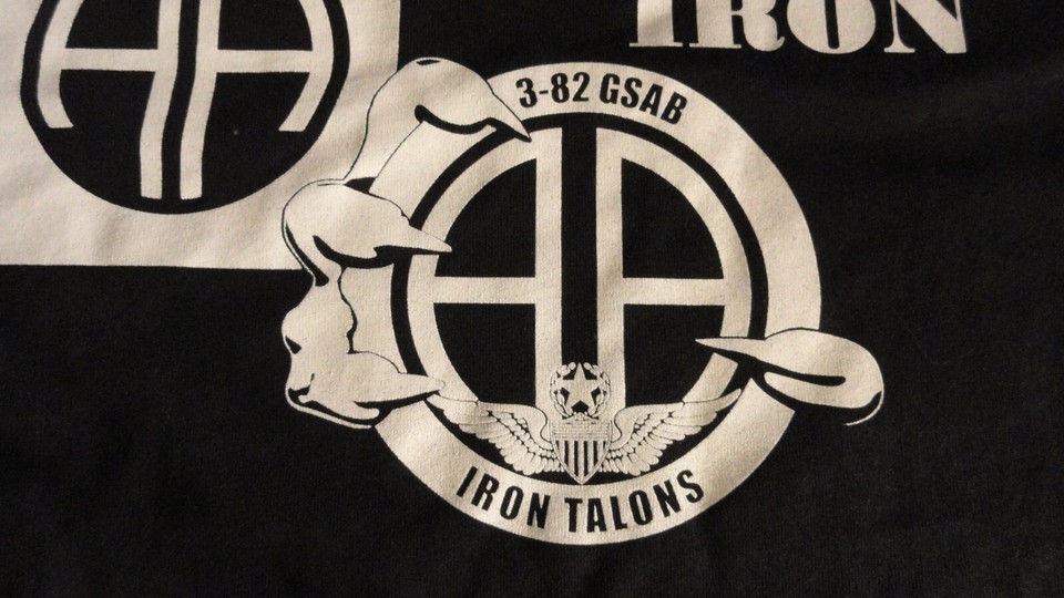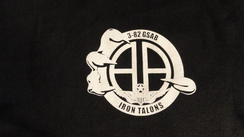 DISCONTINUED 3-82 GSAB AVIATION BATTALION IRON TALONS UNIT SHIRT BLACK MEDIUM