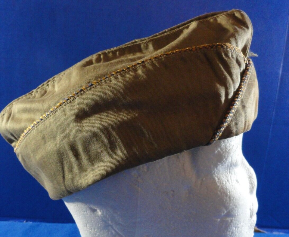 VINTAGE ORIGINAL US WWII ARMY AIR FORCE OFFICER OVERSEAS TAN GARRISON CAP 18 IN