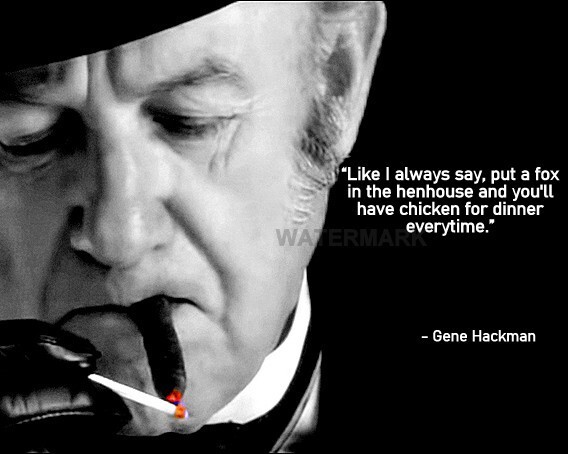GENE HACKMAN QUOTE LIKE I ALWAYS SAY, PUT A FOX IN THE HENHOUSE PHOTO 8X10