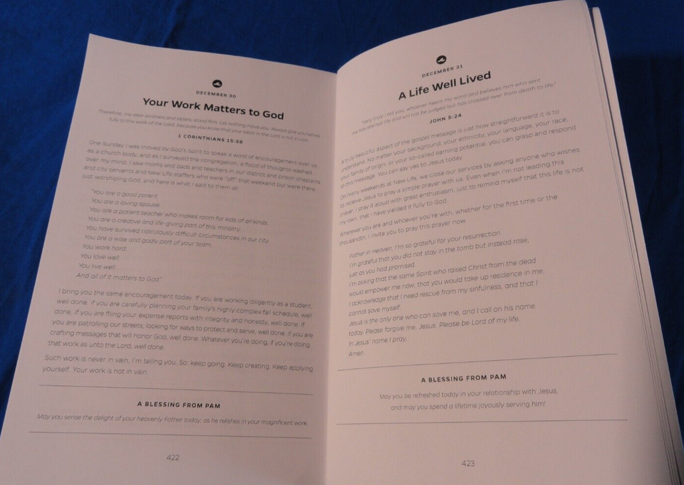 A word of blessing at each entry?s end from Pam Boyd, wife of author Brady Boyd