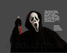 SCREAM'S GHOSTFACE "MY FRIENDS? WHAT WORLD ARE YOU..." QUOTE PHOTO VARIOUS SIZES added to cart.