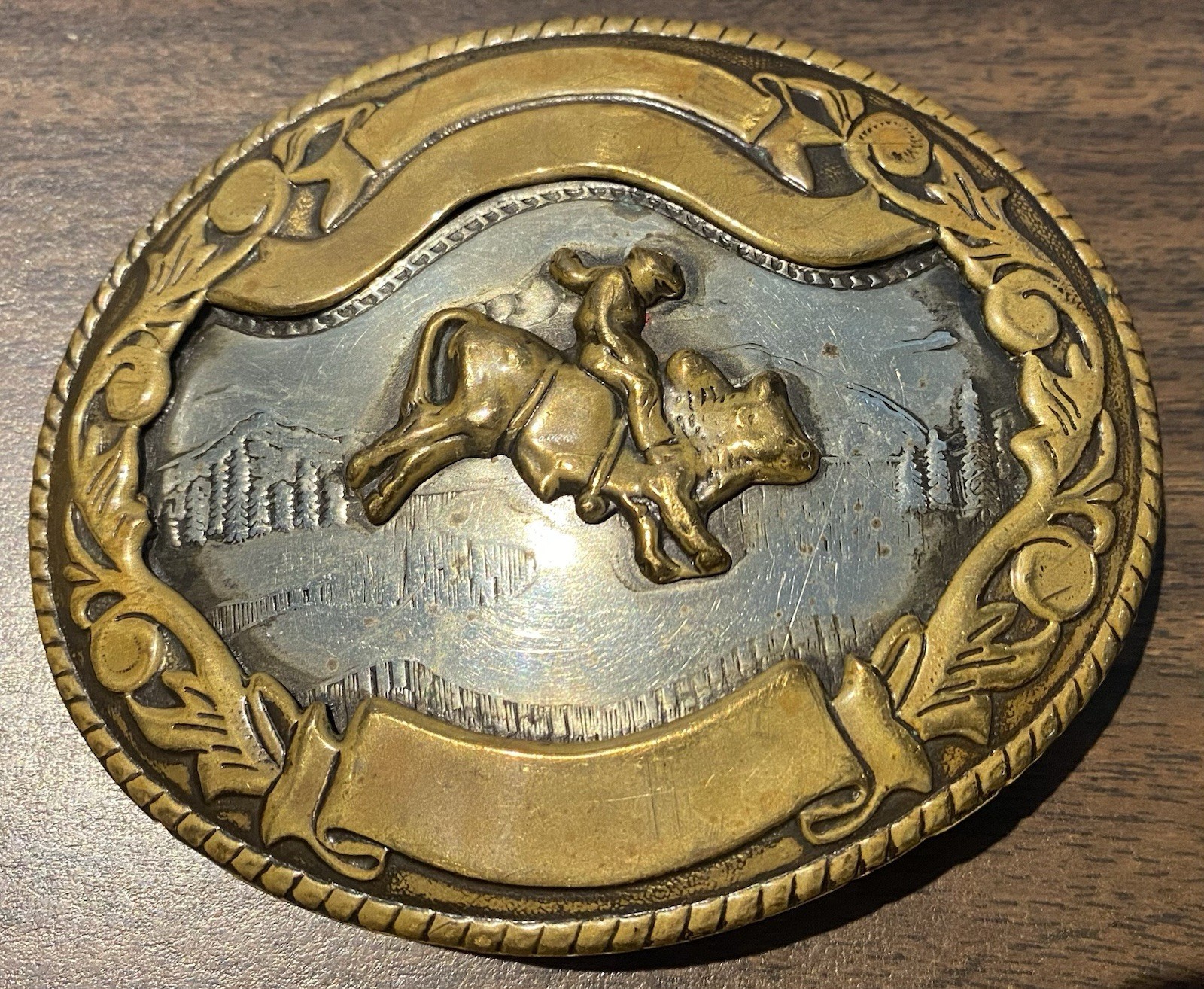 Vintage Western Belt Buckle W/German Silver - Rodeo Bull Rider - Bucking Bull in great condition!