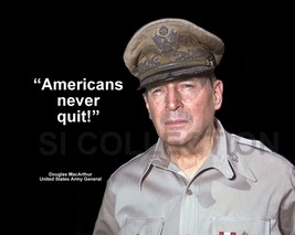 DOUGLAS MACARTHUR "AMERICANS NEVER QUIT!" QUOTE PHOTO VARIOUS SIZES