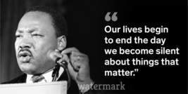 "OUR LIVES BEGIN TO END THE DAY WE BECOME SILENT AOBUT..." QUOTE PUBLICITY PHOTO