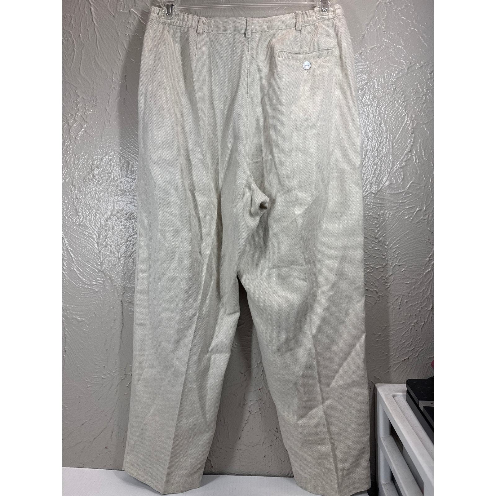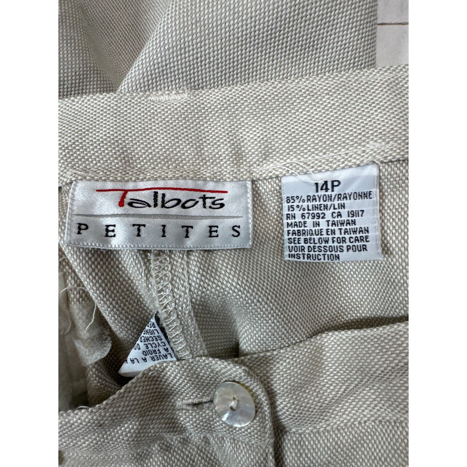 Talbots Petites Womens Gray Pleated Front Relaxed Linen Blend Pants Size 14P