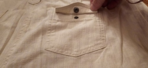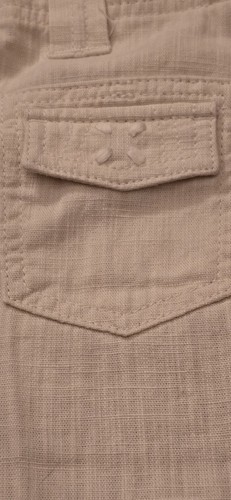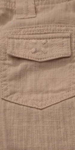 These shorts have 2 slash pockets, along with a small buttoned front pocket and 2 additional pockets on the back. They also have belt loops in order to secure a belt if needed.