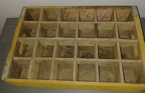 Vintage 1970 Yellow Red Wood Wooden Dr. Pepper 24-Bottle Carrier / Crate from Pennsylvania