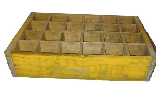 Vintage 1970 Yellow & Red Wood Wooden Dr. Pepper 24-Bottle Carrier / Crate