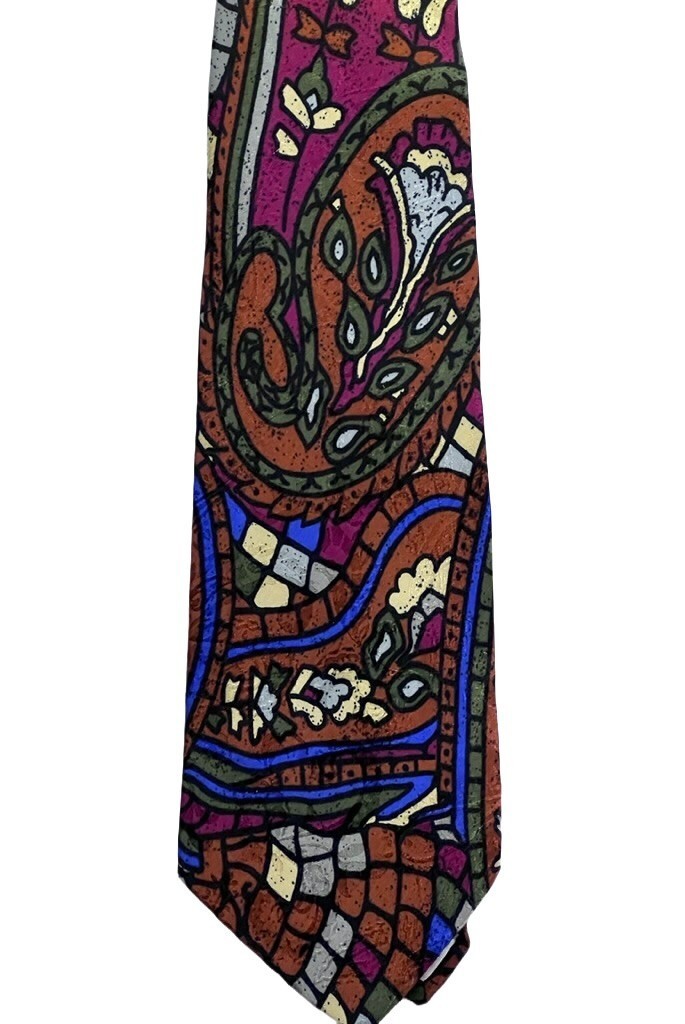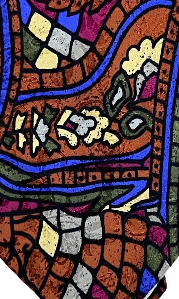 Men's Silk Tie Enrico Capucci Vintage Retro Orange Blue Stained Glass Acid Trip