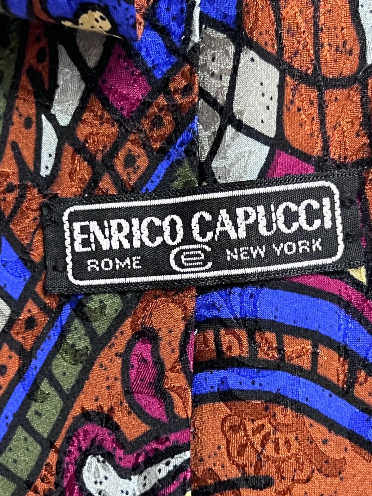 Men's Silk Tie Enrico Capucci Vintage Retro Orange Blue Stained Glass Acid Trip!