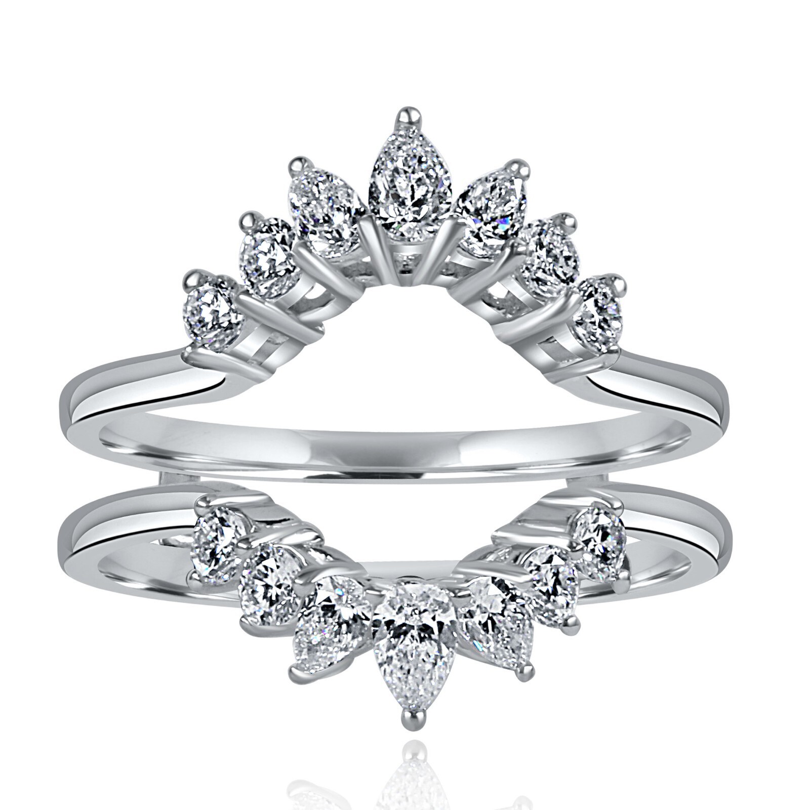 Verbessern Sie das glorreiche sparkle Ihres Verlobungsrings mit diesem schonen 0,75 -karat -birnenformigen und runden geschnittenen Labor, das Diamond Tiara Guard Ring in 14 Karat Weißgold.