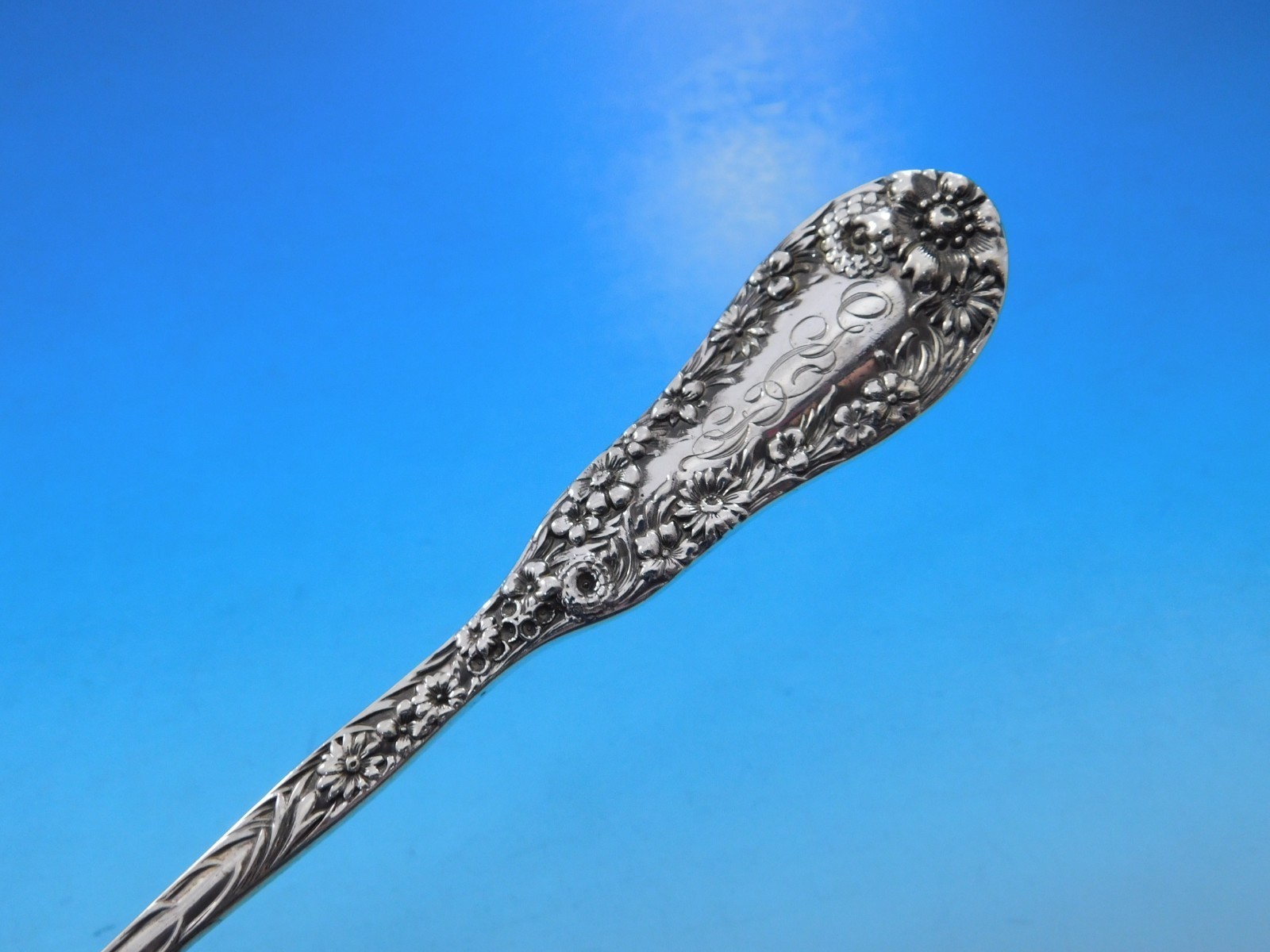12 Fish Knives, all-sterling with flowers on blade, 7 7/8"