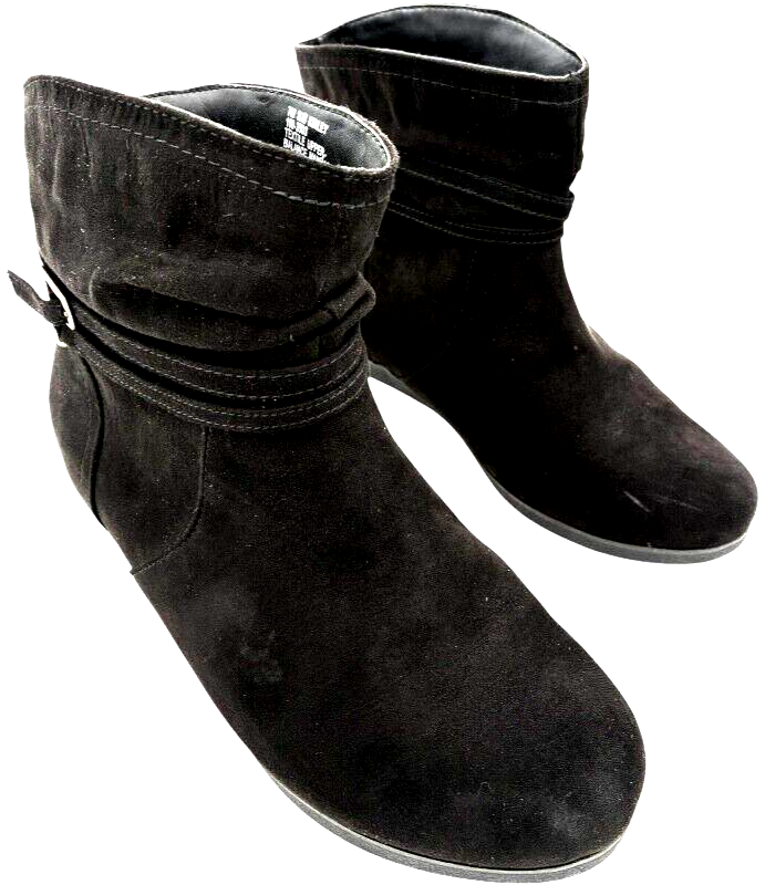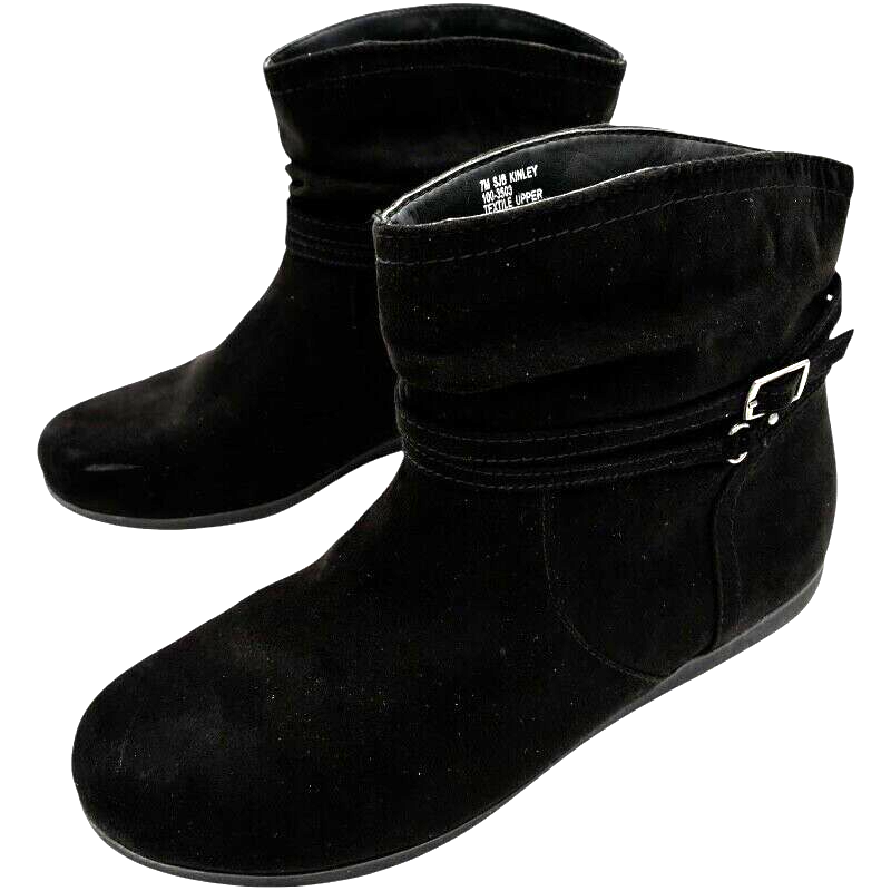 St. John's Bay women's Kinley Black Faux Suede slip-on Bootie w/buckle size 7 M