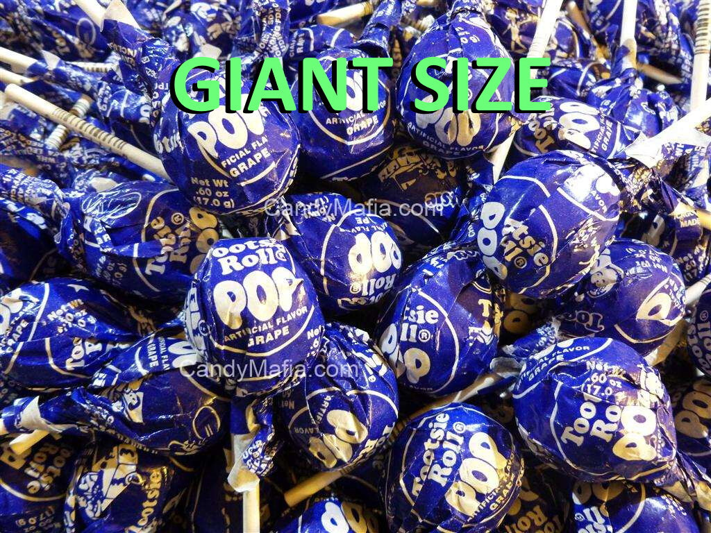 Get your favorite flavor of Tootsie Pops, the Giant Grape Tootsie Pops! The Giant Tootsie Pops taste the exact same, but they are larger! They are about the size of a golf ball, so you'll get more candy with each Tootsie! They really taste like Grape, and they have the Tootsie Roll in the center! Now you don't have to hunt for the best flavor, the Grape! You will receive a bag of approximately 42 Giant Grape Tootsie Pops that have been sorted out from all of the other flavors. Now we do all the work for you!