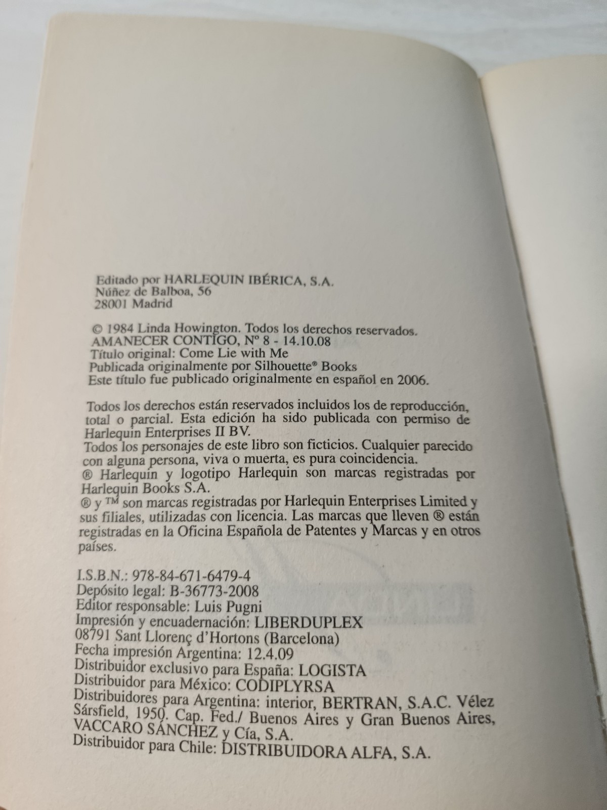 Spanish edition de the romantic novel de Linda Howard published by Harlequin in 2008. An exciting historia que mixes desire, tenderness and second opportunities, narratedconel Envelope and direct stylede The author. Perfect para those who enjoy full contemporary delde intense emotions and unforgettable characters. Please, si receiving el articleno You are satisfiedcon Your condition, contact usantesde Leave a neutral or negative assessment. We will solve any problem con and personalized attention. We are in Spain and we offer carefully selected items: Vinyl, VHS, DVDs, cassettes, books and de objects. We provide special attention to the State, rarity and presentation. We Are Based in Spain and Offer Carefully Curated Items: Vinyl Records, VHS Tapes, DVDs, Cassettes, Books and Collectibles