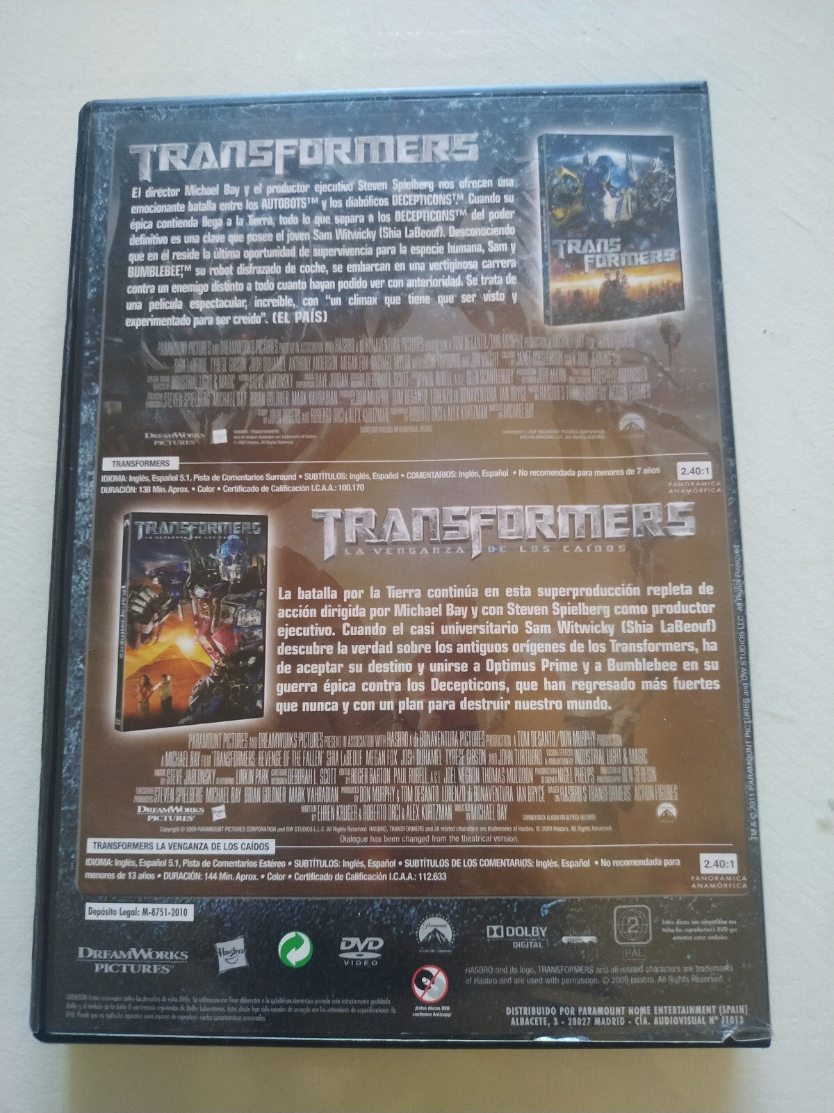 Transformers + Revenge de los Falling - 2 X DVD Spanish English Region 2