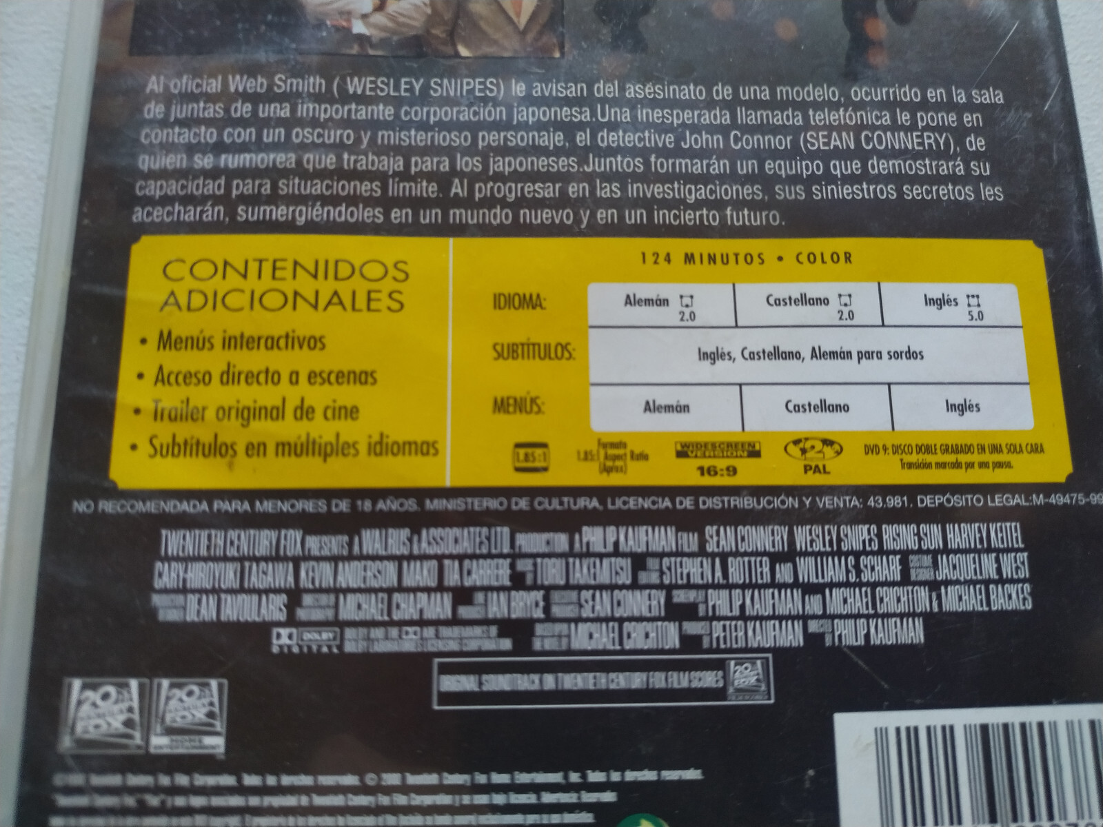 Rising Sun Sean Connery Wesley Snipes - DVD Spanish English Region 2 Am
