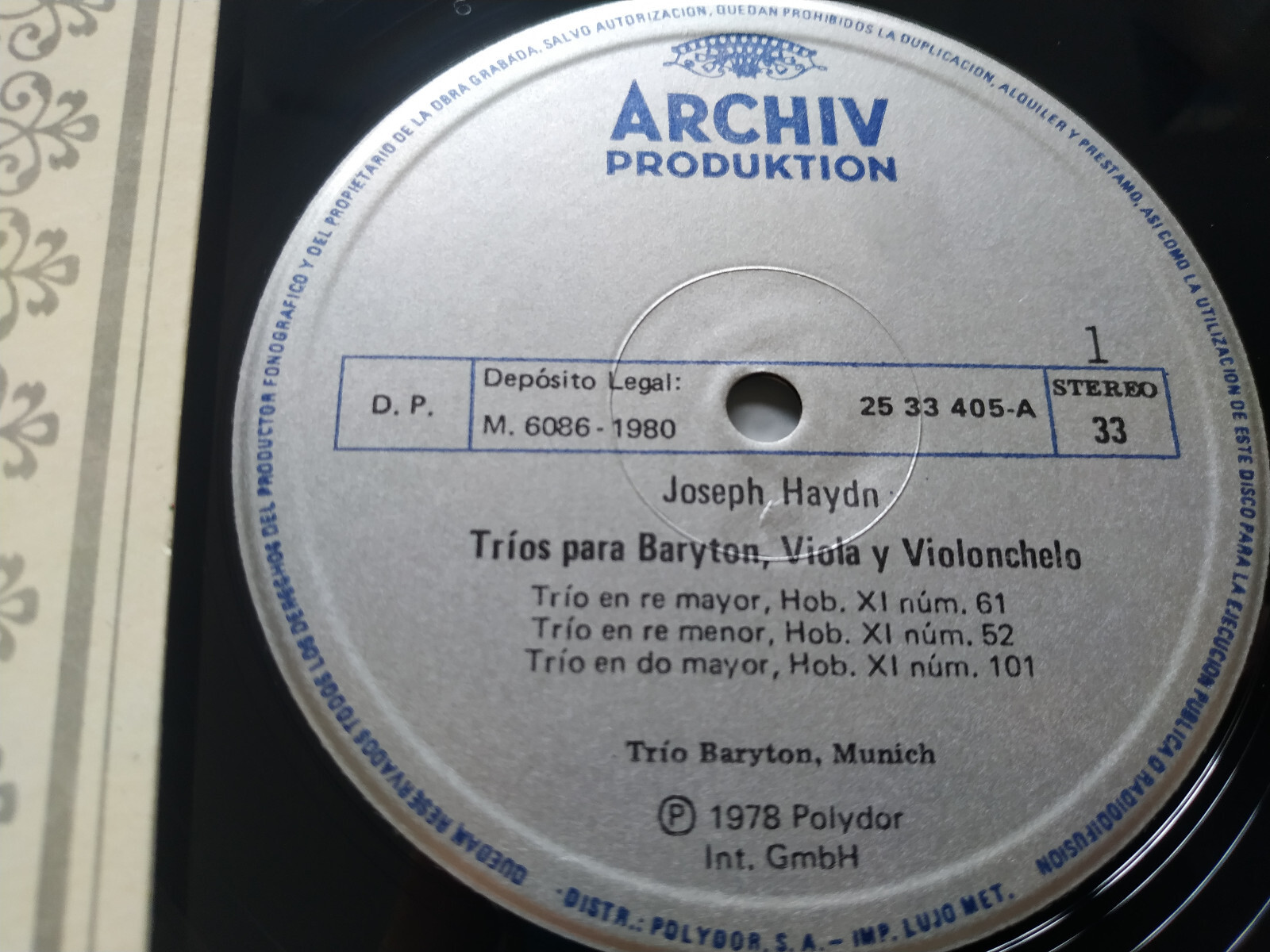 Haydn Trios para Baritono Viola Violelo 1978 Archiv - Lp 12 " vinyl Vg/Vg