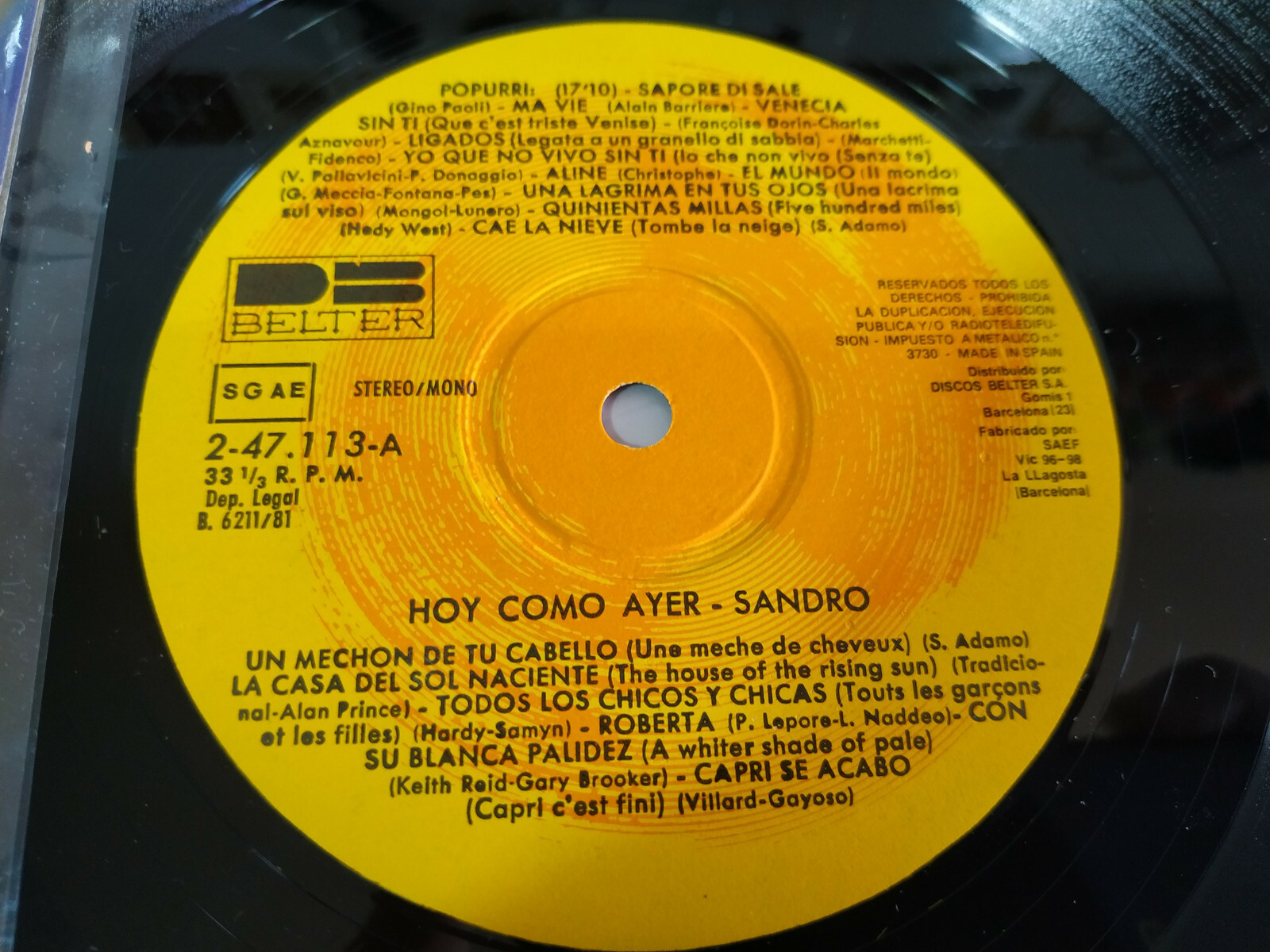 Sandro Hoy Como Ayer Sapore Di Sale Belter 1981 - LP Vinyl 12" VG/VG