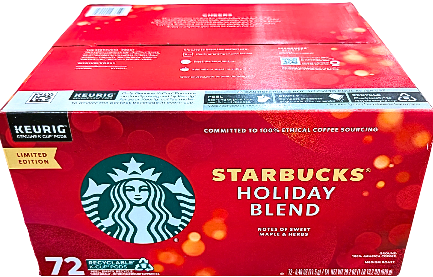 Starbucks Holiday Blend Medium Roast 72 Count K-Cup Pods EXP 06/2026
