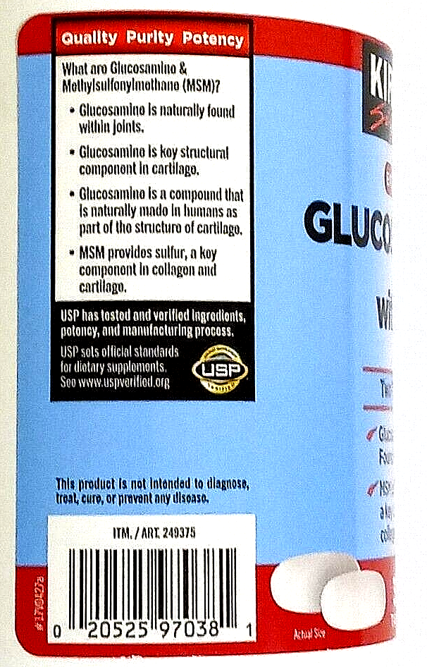 Kirkland Signature Extra Strength Glucosamine HCI 1500mg with MSM 375 Tablets