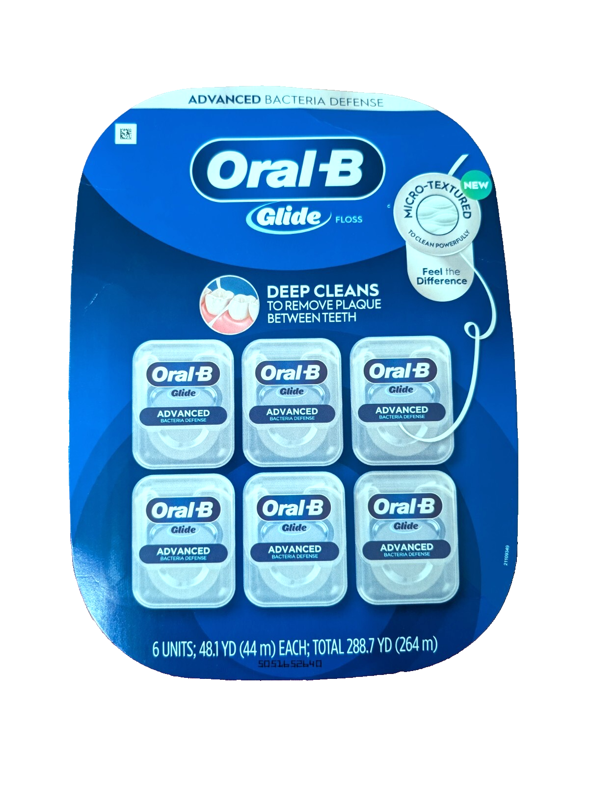 Oral-B Glide Advanced Bacteria Defense Floss Mint Flavored 6 Pack 44m Each