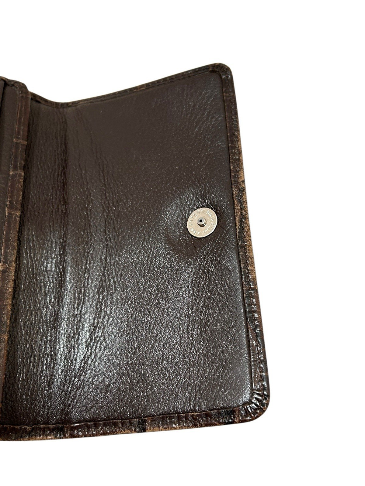 Brighton Croc Brown Leather Trifold Wallet Silver Magnetic Closure Checkbook