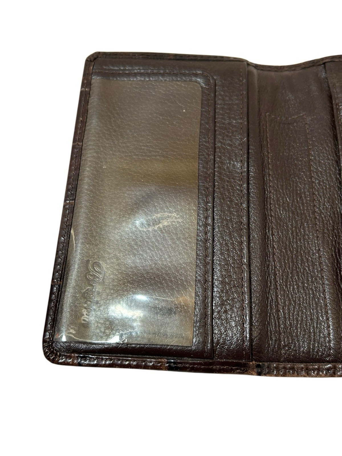 Brighton Crocodile Embossed Brown Leather Trifold Wallet Silver Magnetic Closure with Checkbook Holder!