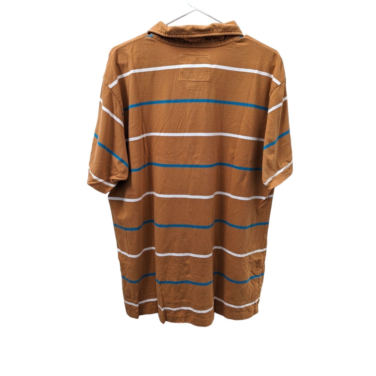 Vintage Y2K Brown Blue Cotton Striped Short Sleeve Rugby Polo Shirt Xlarge XL