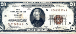 Serie De 1929 $20 Billete Nacional Reserva Federal Chicago FR #1870-G Bueno