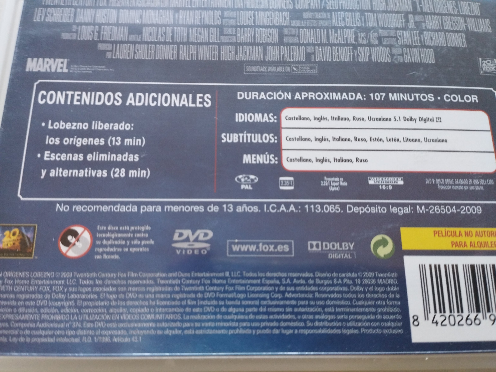X -Men Origenes Wolverine + Extras Hugh Jackman - Spanish Spanish DVD Region 2 AM
