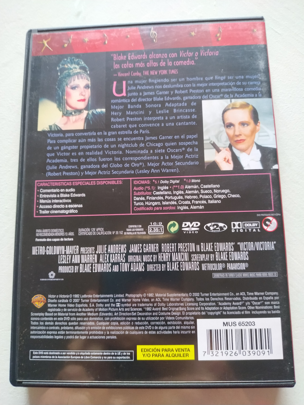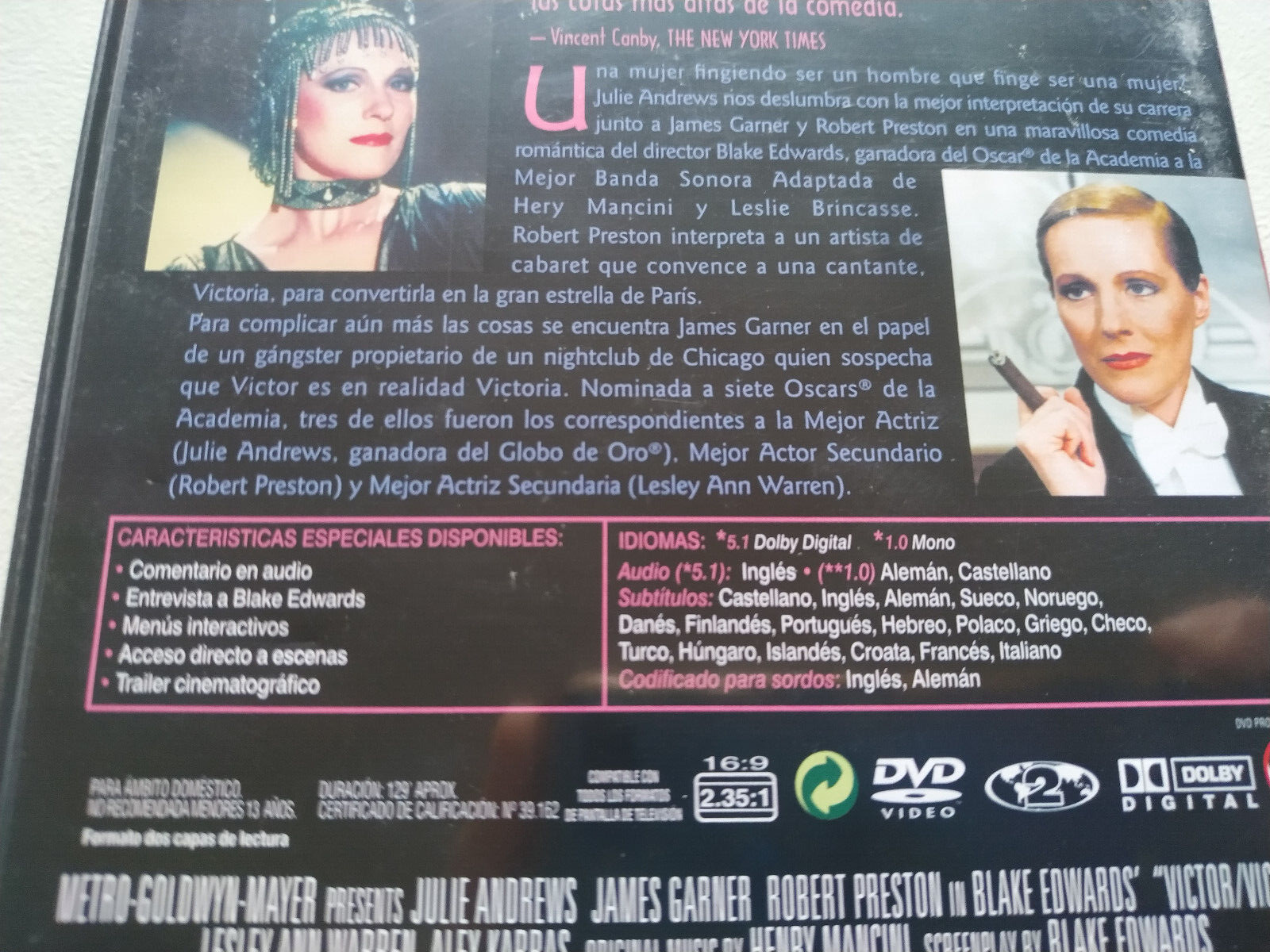 Victor o Victoria Julie Andrews James Garner - Spanish English DVD region 2 am