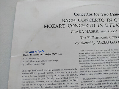 Bach Mozart Concertos For Two Pianos Alceo Galliera Emi LP 12 " vinilo VG/VG Am