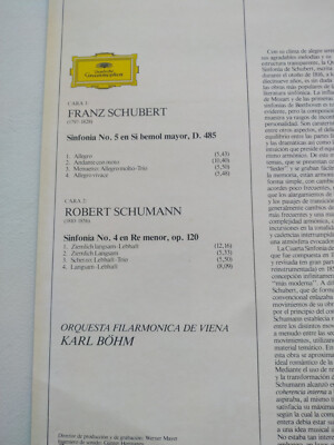 Schubert Schumann Symphonie no 5 4 Karl Bohm 1980 - LP 12 " vinilo VG/VG