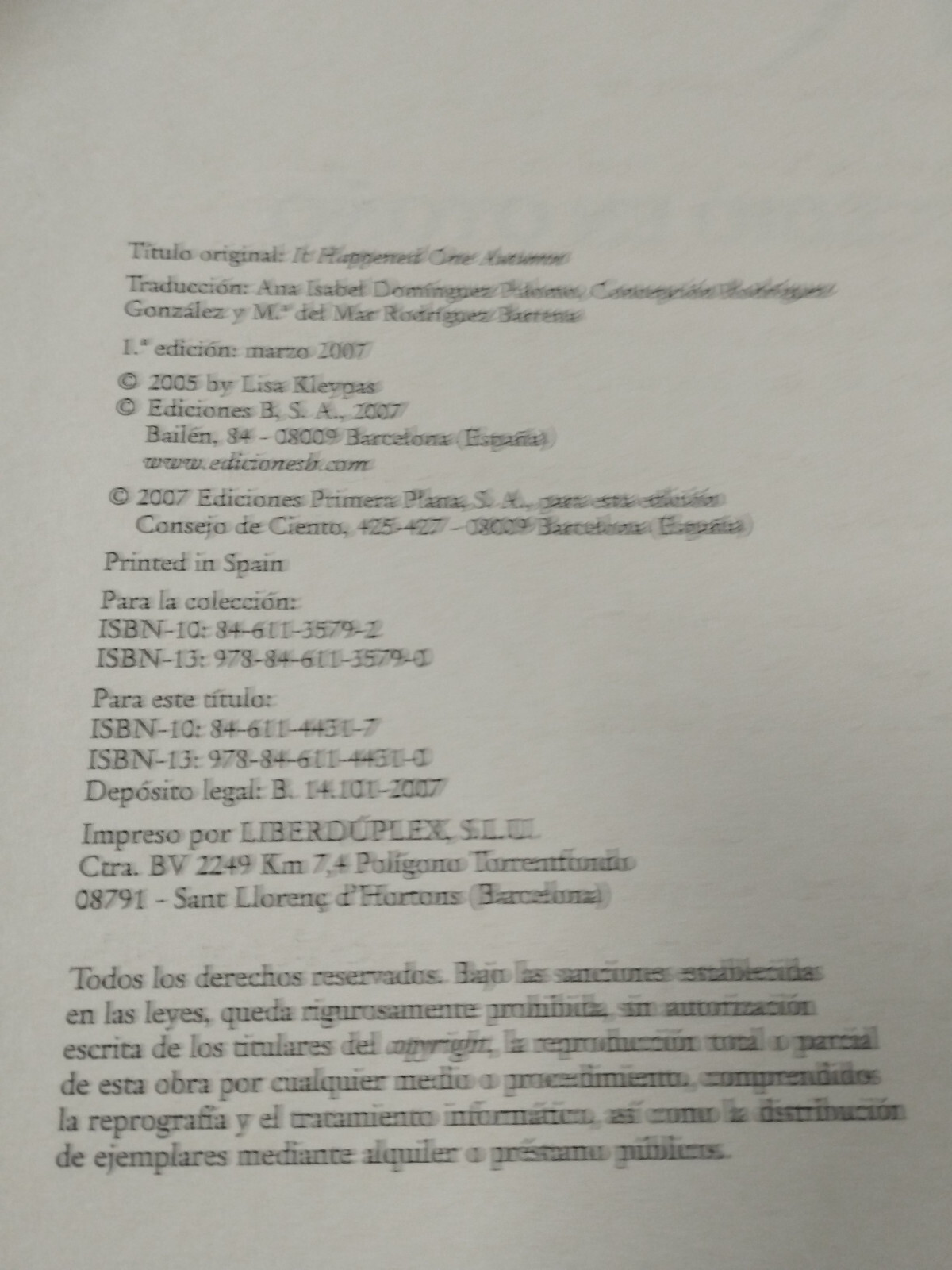 E' Successo IN Autunno Lisa Kleypas Romantica Rba 2007 - Libro Spagnolo Am